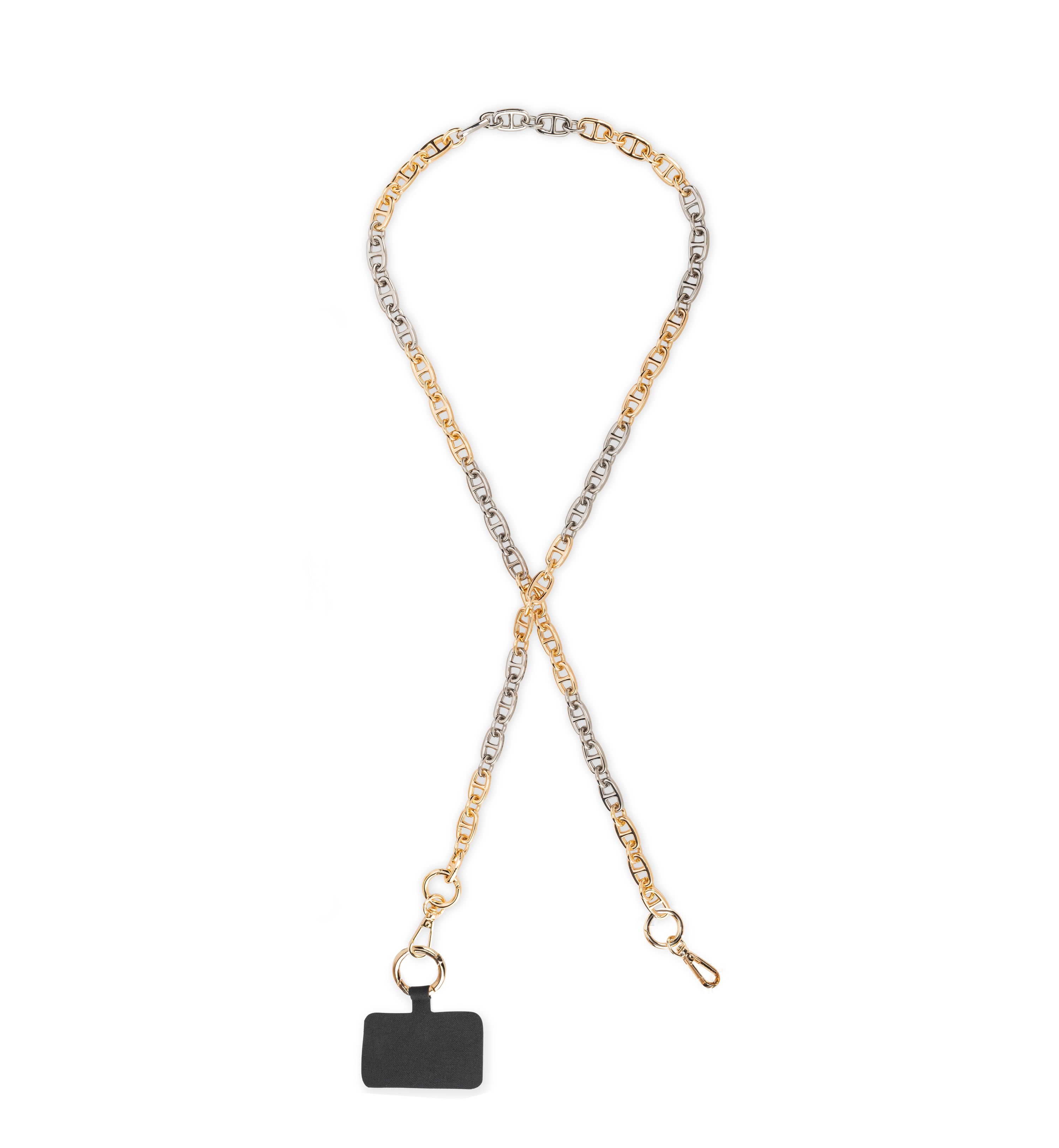 This lanyard crossbody is designed for maximum adaptability, effortlessly pairing with any smartphone case. Wear it as a crossbody or detach the jewelry section and wear it as a wristlet. The square zippered wallet securely holds your cash, credit cards, AirPods, or even dog treats, while the attached phone tether allows for uninterrupted wired or wireless charging.