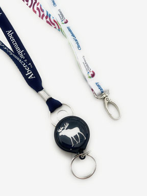 Bonitas International offers custom designed imprinted lanyards and badge reels. Our lanyards are breakaway, and we offer multiple options for the clip and can include a split ring or badge reel. Badge reel options include spinning alligator back or belt clip.